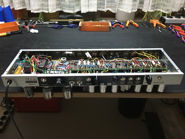 - Power Amp: 2× 6L6GC, 45W or 35W, switchable (Hi B+/Lo B+), Class A/B push/pull